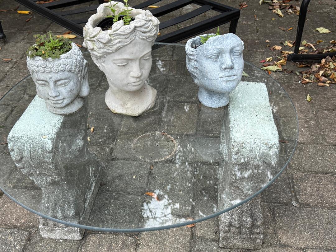 I have a small collection of head planters. They're not looking too spiffy at the moment, but they look great with the right kind of plant in there.